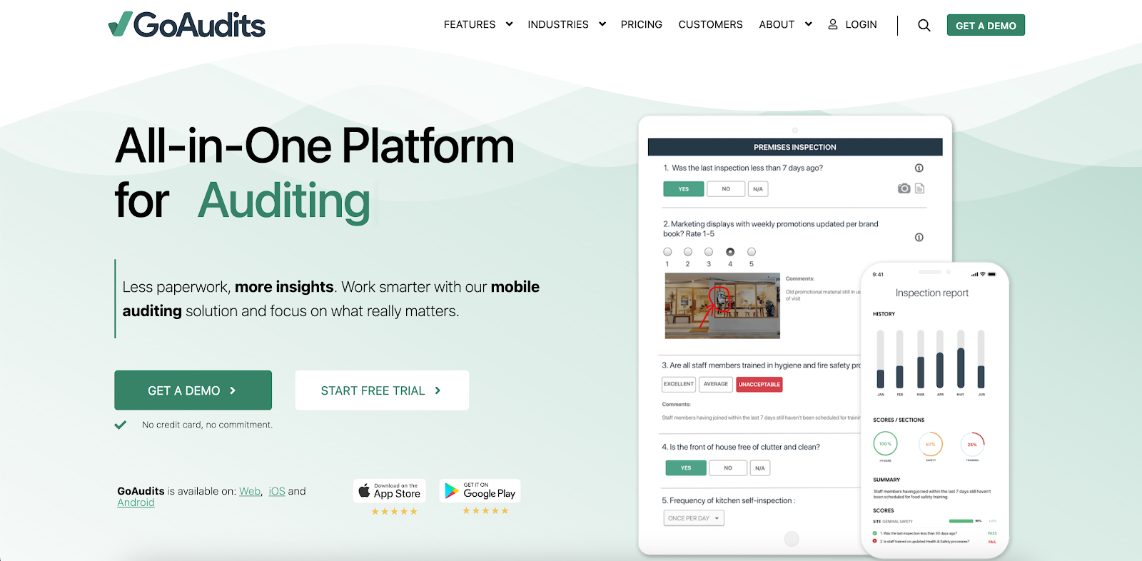 GoAudits is an all-in-one mobile audit and inspection platform for teams that prioritize efficiency and accuracy. It allows users to conduct audits, capture data, and generate reports directly from their smartphones.